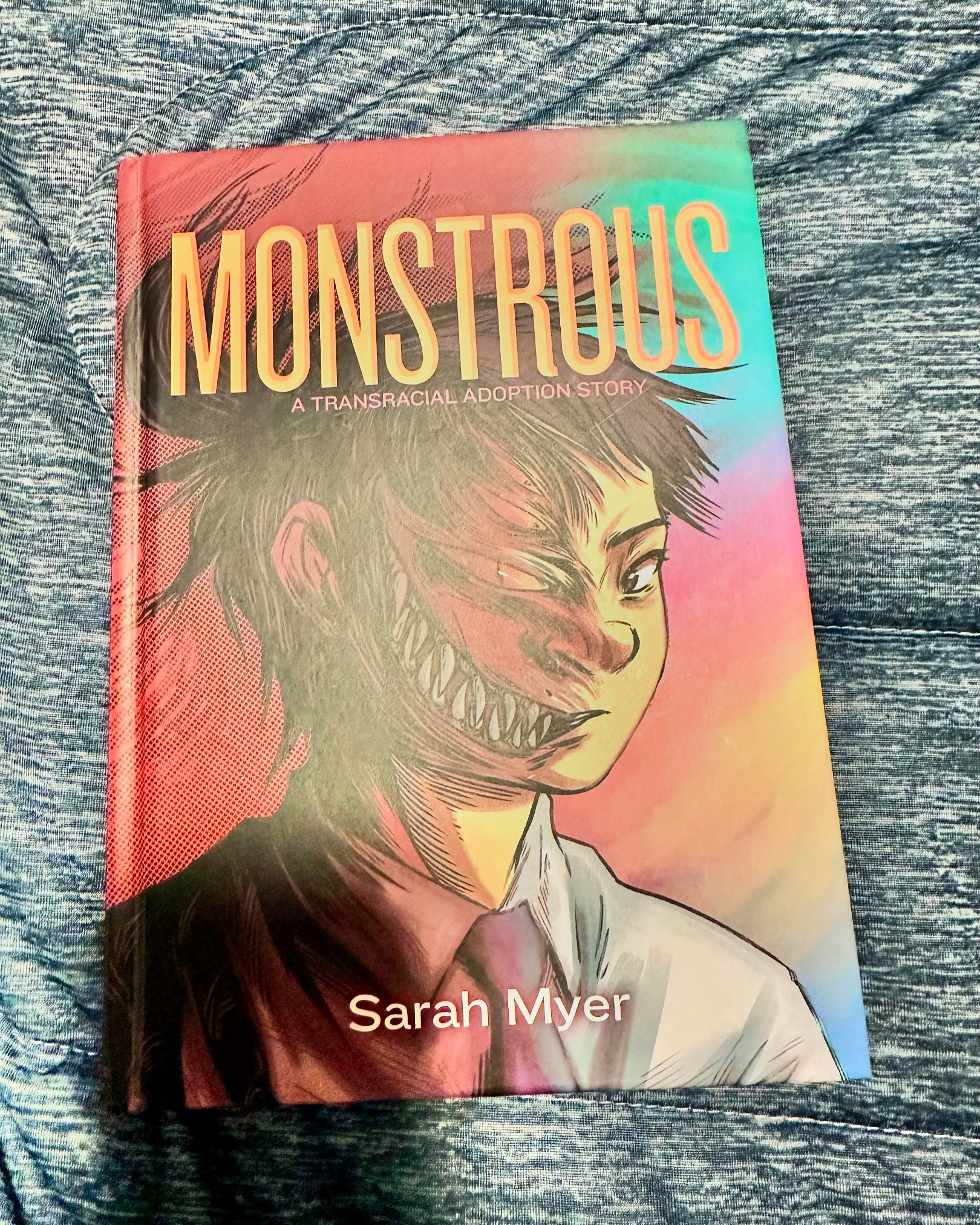 Back in August, I attended FlameCon, New York’s largest LGBTQ+ comic and pop culture convention, and it was an unforgettable experience. FlameCon is a vibrant celebration of queer creativity, bringing together fans and creators from across the spectrum of pop culture to share stories, art, and fandom. It was there that I had the privilege of meeting Sarah Myer, the author of Monstrous: A Transracial Adoption Story. After hearing them speak about her creative journey and flipping through the stunning artwork in their graphic memoir, I couldn’t wait to dive into this poignant and deeply personal story.